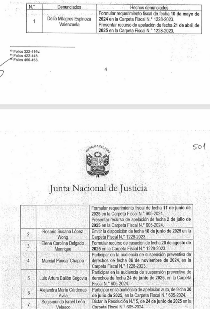 La Junta Nacional de Justicia (JNJ) ha iniciado una investigación preliminar contra la fiscal suprema Delia Espinoza y un grupo de magistrados por presuntas irregularidades en el pedido de suspensión de Patricia Benavides emitido en 2025.